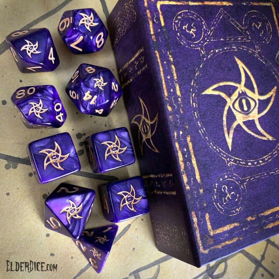 Elder Dice Set: 9-Die Mystic Purple Astral Elder Sign Polyhedral Set